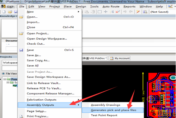 调出输出向导菜单:fileAssembly outputsgenerates pick and place file