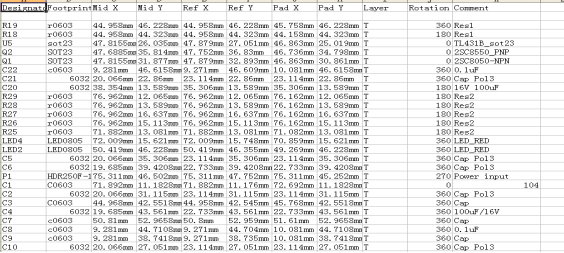 我们可以在 存储pcb源文件的同一目录找到这个坐标文件,扩展名为CSV(csv文件可用excel直接打开),如图:
